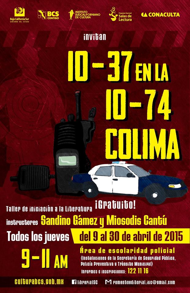 CategoríasEventos culturales 10-37 en la 10-47 Colima By Editor D.C. - 9 abril, 2015 0 2 FacebookTwitterPinterestWhatsApp Taller gratuito de iniciación a la literatura todos los jueves del 9 al 30 de abril de 2015 de 9 a 11 de la mañana Instructores Sandino Gámez y Miosodis Cantú Informes e inscripciones: 12 2 11 16
