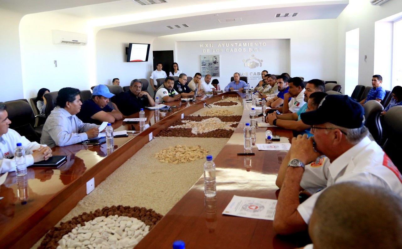 Encabezó la reunión el primer regidor en funciones de presidente municipal, Jesús Antonio Gómez Montoya, quien al respecto destacó que, como autoridad municipal se está preparado para brindar información, seguridad y asistencia a las familias de Los Cabos, antes, durante y después de cualquier contingencia meteorológica.