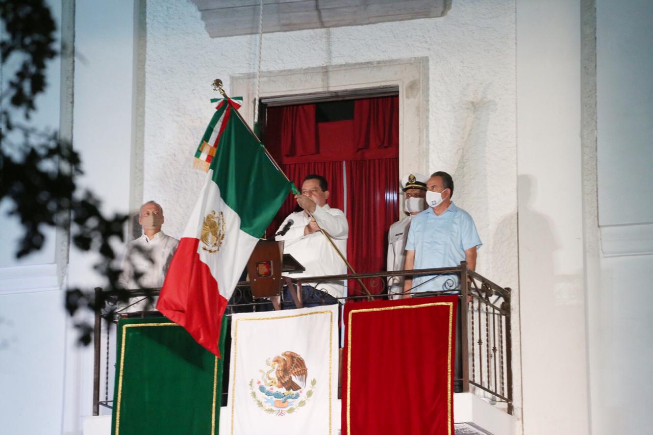 Desde el antiguo Palacio de Gobierno, el Jefe del Ejecutivo Estatal, Carlos Mendoza Davis; dio el tradicional Grito de Independencia.