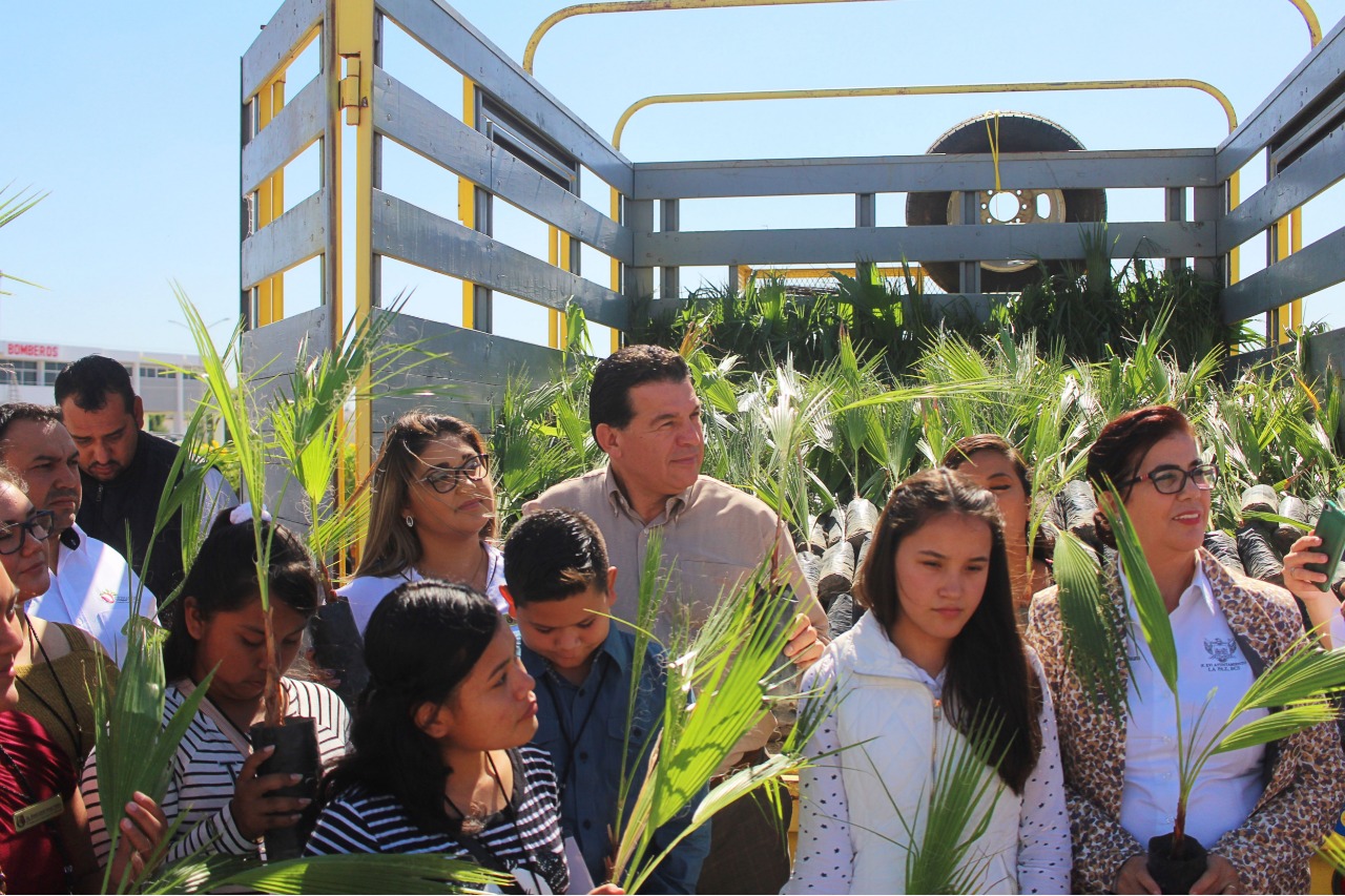 Por su parte, el titular de la Conafor en la entidad, Javier García, explicó que las palmas que se entregan, estaban en un vivero en el municipio de Los Cabos y que actualmente tienen aproximadamente 6 meses de vida, con 50 a 70 cm de altura. Además, precisó que como parte del compromiso de colaboración hará entrega en el futuro, de más especies de árboles como tabachín y neem.
