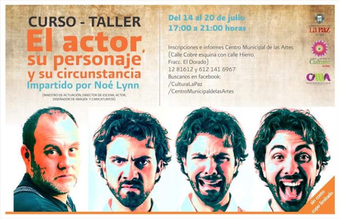 Del 14 al 20 de julio el Centro Municipal de las Artes te invita al Curso-Taller “El Actor, su personaje y su circunstancia” impartido por Noé Lynn, maestro de actuación, director de escena, actor, diseñador de imagen y caricaturista.