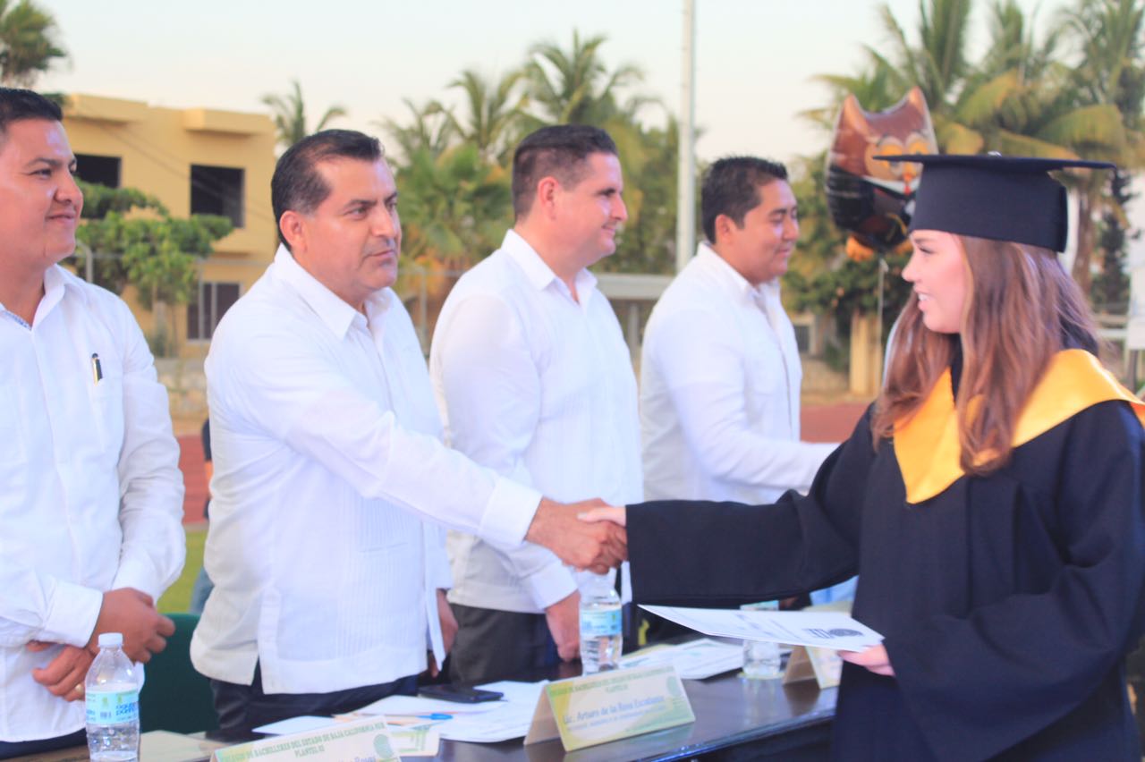 El Gobierno Municipal de Los Cabos, trabaja con la mira puesta en la educación de la niñez y juventud cabeña, considerando que la enseñanza se conquista a diario: con trabajo serio, con objetivos, con metas, con orden y con rumbo hacía un mejor futuro; externó el Secretario General del XII Ayuntamiento, Luis Alberto González Rivera, al presenciar el egreso de 335 jóvenes, del Colegio de Bachilleres del Estado (COBACH), Plantel 02, cuya generación apadrinó el nombre del Presidente Municipal de Los Cabos, “Arturo de la Rosa Escalante” y su esposa, “Vianey Núñez de De la Rosa”.