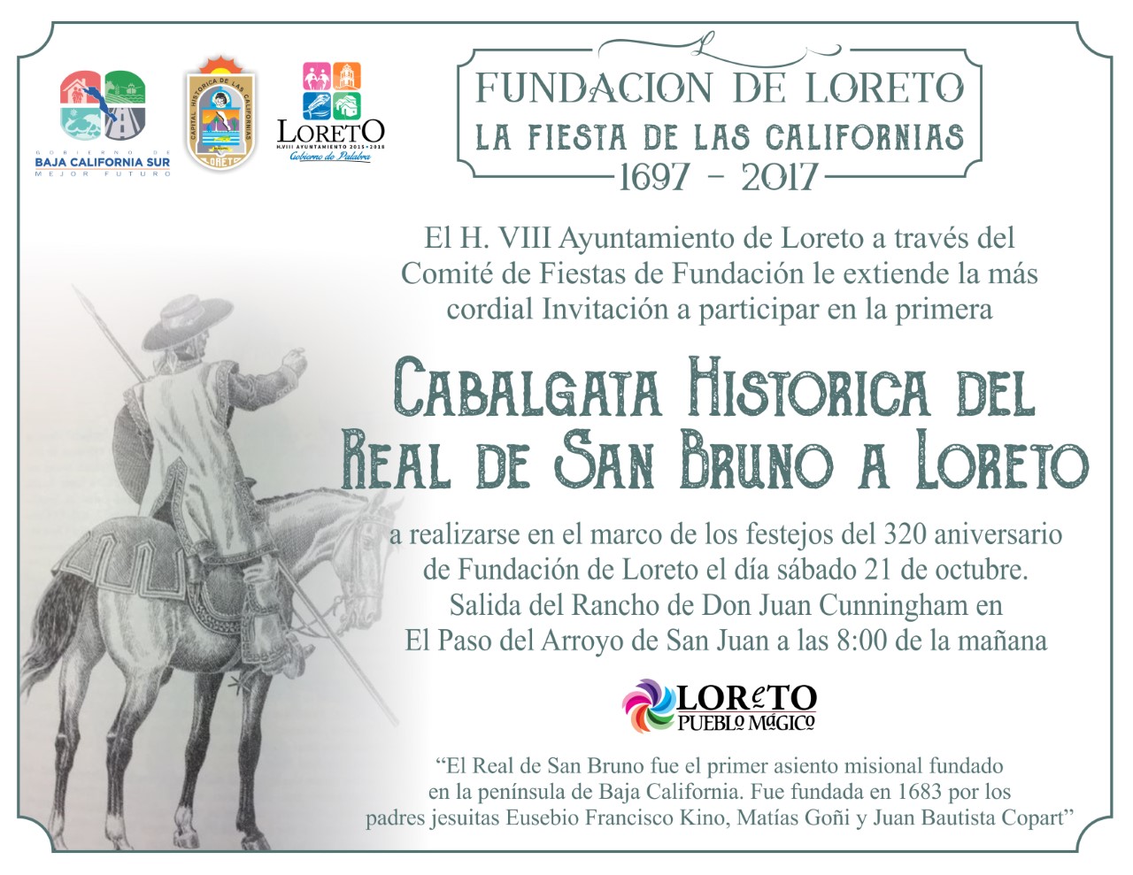 Manuel Salvador Talamantes Romero, subrayó, una invitación a todos los cabalgantes, a sumarse a esta primera cabalgata histórica, del Real de San Bruno, a Loreto, misma que se espera organizar, año con año.