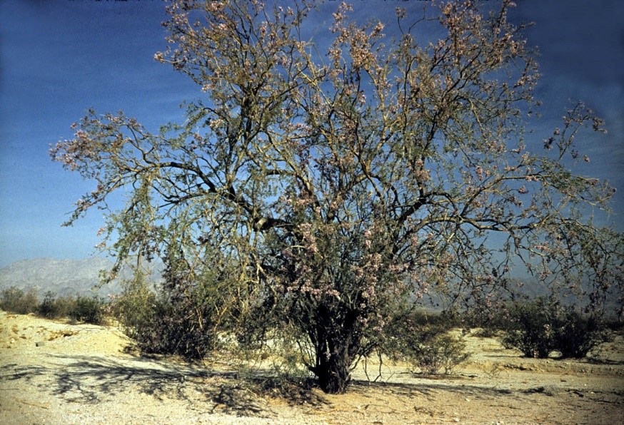 El palo fierro (Olneya tesota) es un árbol endémico de Sudcalifornia, todo el noroeste de México y del suroeste de USA. Su hábitat está incluido estrictamente en el del mezquite, otra oleaginosa más extendida aún. La dura madera del palo fierro es apreciada tanto para hacer carbón, como fuente de calor, como artesanías y, en mucho menor escala, herramientas. Antiguamente, sus semillas tostadas se utilizaban como sustituto de café, cuando los barcos de carga provenientes de Sinaloa no lograban surtir la demanda del estado.