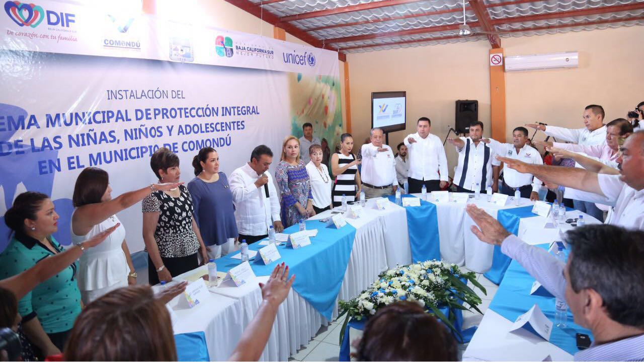 En el marco de referencia de la Convención sobre los Derechos de la Infancia, que obliga a brindar educación, información, alimentación, cariño y bienestar, entre otras cosas; a la niñez y adolescencia sudcaliforniana; la Presidenta del Sistema Estatal para el Desarrollo Integral de la Familia (SEDIF), Gabriela Velázquez de Mendoza, tomó protesta a los integrantes del Sistema de Protección Integral de Niñas, Niños y Adolescentes, en el municipio de Comondú.