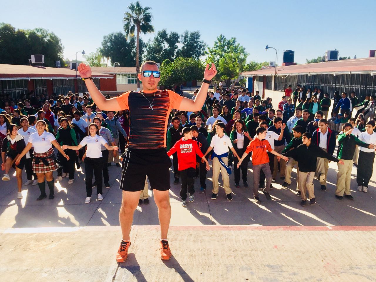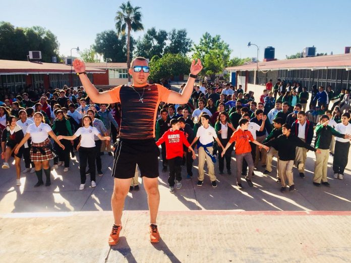 *Por más de 30 minutos, decenas de jóvenes de la Escuela Secundaria “Benito Juárez”, se pusieron en movimiento con el programa de activación física.