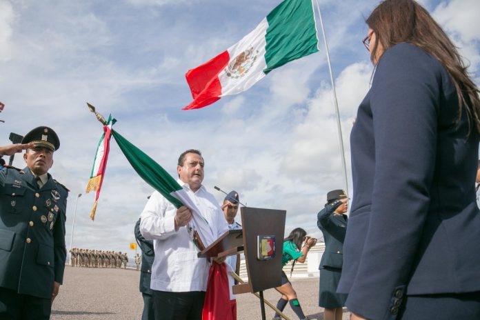 Por su parte, el Comandante, Edgar Humberto Flores García, señaló que la Bandera de México, convoca a la unión de los ciudadanos y simboliza la independencia, el honor, las instituciones y la integridad del territorio nacional.