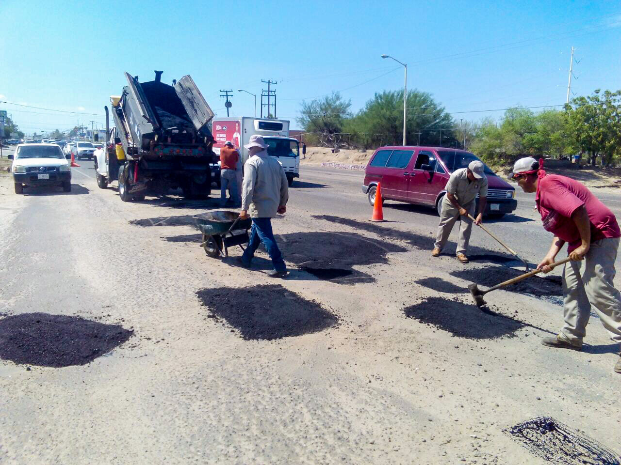 “En la ciudad de La Paz, estamos trabajando del Boulevard J. Mújica a Pino Pallas, un tramo muy extenso, en el que la sociedad había manifestado su deterioro. Es importante mencionar, que las principales avenidas: Boulevard Forjadores, 5 de Febrero, Colosio e Isabel La Católica, ya han sido atendidas; así como los accesos principales a fraccionamientos y colonias”; reveló el funcionario.