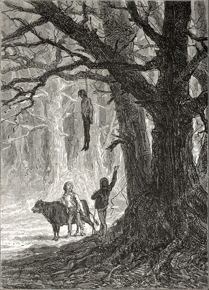 Cuenta la historia que existía una pareja que vivía en el lugar y que tenían un niño pequeño con retraso mental, la joven esposa era odiada por la suegra y la acusaba de adulterio; tanto fue su odio, que convenció a su hijo de que su mujer era mala. Y en el afán por castigarla, un día planearon su muerte, matándola a golpes y sin piedad con la piedra de un metate, de esas que antes se usaban más frecuentemente para moler maíz; fue tan cruel la muerte de Martina que sin darse cuenta los asesinos quedaron bañados en sangre, por lo que de inmediato trataron de cubrir su maldad y sacaron el cuerpo de la joven, que dicen tenía alrededor de 15 años, la envolvieron en un cuero de vaca y la arrastraron hasta un claro en el monte, donde buscaron un árbol de donde colgarla para que pareciera que se había suicidado. Esto le hicieron creer a la gente y pensaron que se saldrían con la suya, pero no contaban con que la policía empezaría a indagar sobre el hecho y que la persona que menos pensaban los delataría; cuando la policía llegó a la casa de la difunta Martina, aquel pequeño niño con retraso mental les contó todo lo sucedido, exponiendo a los asesinos de su madre a enfrentarse a la justicia.