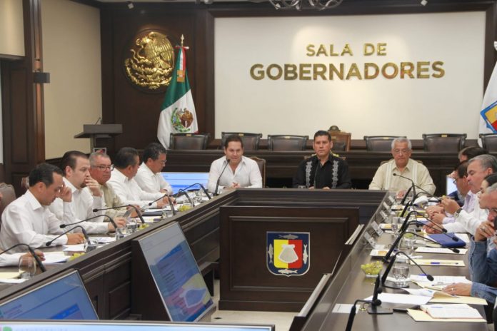 Durante la reunión celebrada en la sala de Gobernadores de Palacio de Gobierno; señaló, que se conjuntarán esfuerzos para generar mayores condiciones de progreso y bienestar para las familias, así como para el fortalecimiento y crecimiento sostenido del sistema económico; bajo los principios de conservación y uso responsable de los recursos naturales.
