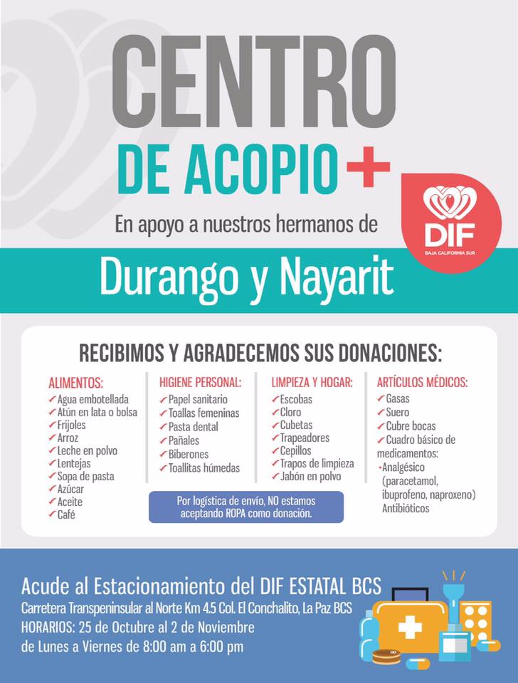 temasOpiniónPeriodismo SEDIF CENTROS DE ACOPIO EN APOYO A NUESTROS HERMANOS DE DURANGO Y NAYARIT By admin - 30 octubre, 2018 0 5 FacebookTwitterPinterestWhatsApp