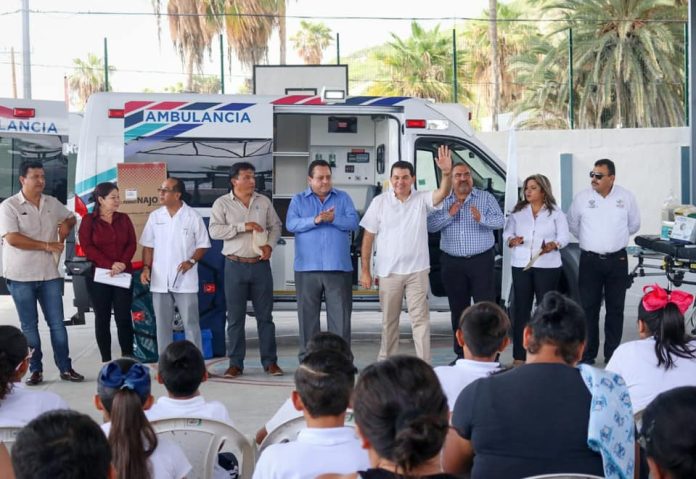 ALCALDE DE LA PAZ Y MANDATARIO SYDCALIFORNIANO ENTREGAN AMBULANCIA A DELEGACIÓN DE LOS BARRILES.