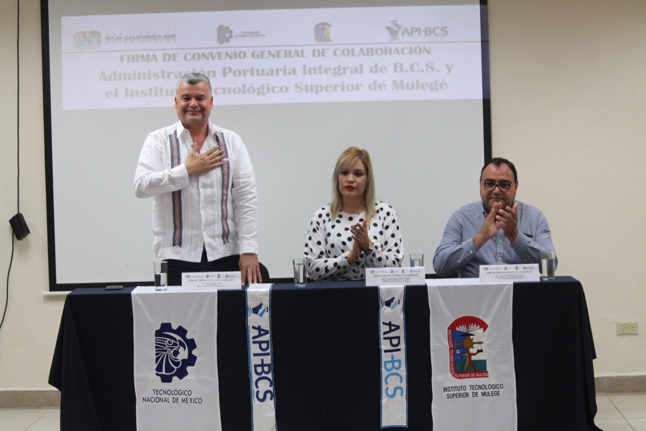 El Director de la Administración Portuaria Integral, José López Soto y con la representación del Director General del Instituto Tecnológico Superior de Mulegé, Juan Antonio Villavicencio Villalejos; la Maestra, Dalila María Díaz López, Subdirectora de Planeación y Vinculación; firmaron un convenio de colaboración que permitirá a los estudiantes de esta institución, realizar su servicio social y prácticas profesionales en el Puerto de Santa Rosalía.