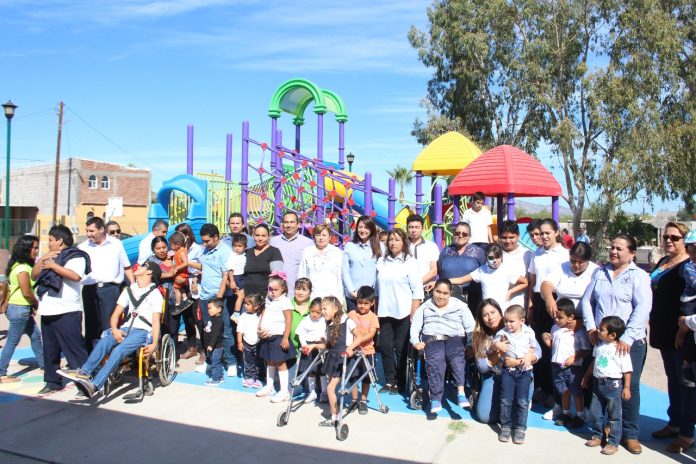 La Presidenta Municipal, señaló, que el suministro y colocación del primer juego infantil especial para niños con capacidades diferentes en el Estado de Baja California Sur, contará con una capacidad para 32 niños, de entre 6 a 12 años de edad, área que también incluye: rampas, pasamanos, tobogán y resvaladilla con sombra.