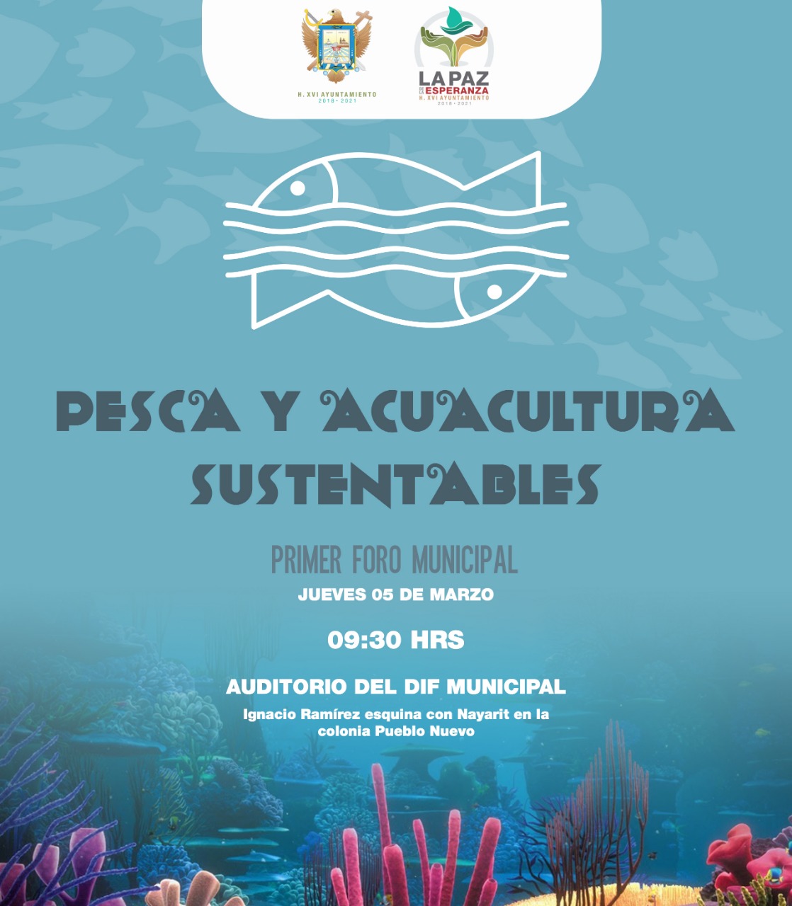 Con la finalidad de atender al sector pesquero y acuícola del municipio de La Paz y ante la expectativa que tiene el sector, sobre lo que se viene este año 2020, en: planes, programas y presupuestos; se realizará esta semana el Foro Municipal de Pesca y Acuacultura Sustentables, convocado por este XVI Ayuntamiento de La Paz.