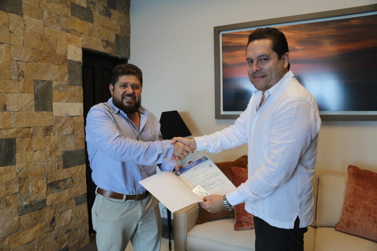 El Secretario de Turismo, Economía y Sustentabilidad (SETUES), Luis Humberto Araiza López, al entregar la Licencia Número 100, a la empresa Bahía Inmobiliaria S.A de C.V.; en el marco del requisito establecido dentro de la Ley de Agentes Profesionales Inmobiliarios, para regular esta actividad.