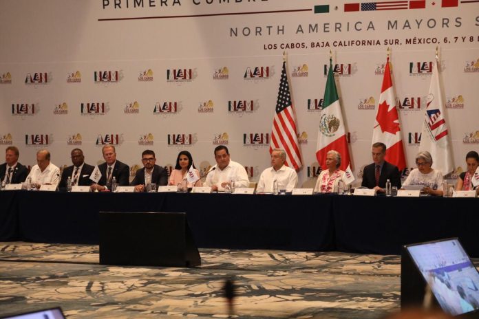 En esta reunión en la que participan alrededor de 140 alcaldes de los tres países, el mandatario sudcaliforniano destacó la importancia de la integración económica de los tres países, iniciada hace 25 años, lo que nos consolidó como un bloque comercial competitivo para la inversión, el desarrollo industrial, el científico y de comercio.
