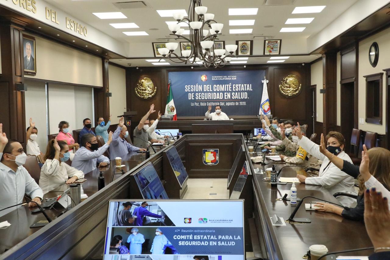 En punto de acuerdo, el Comité Estatal de Seguridad en Salud, ratificó que, Baja California Sur, siga del 21 al 28 de agosto, en el nivel 5 del sistema de alerta sanitaria por Covid-19.