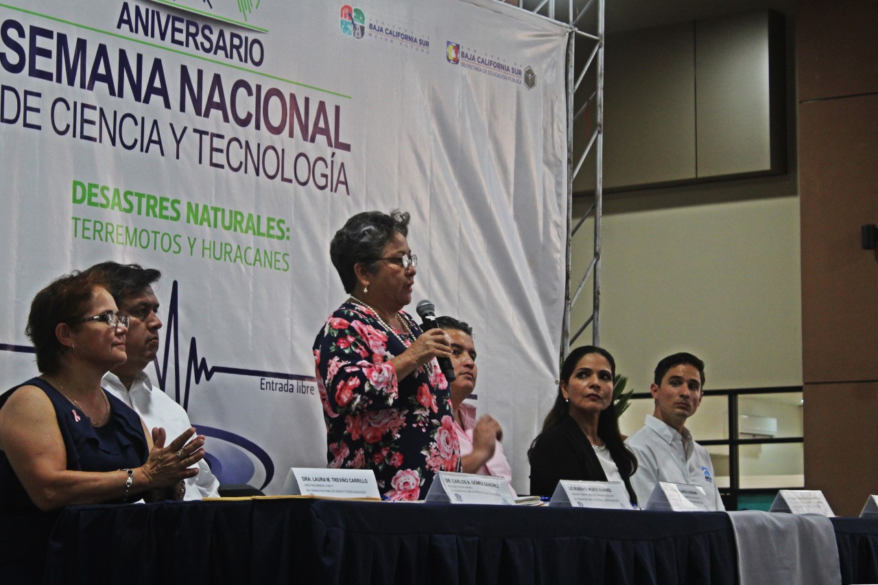 Acompañada de la Directora del Consejo de Ciencia y Tecnología (COSCYT), en Baja California Sur, Laura Mónica Treviño Carrillo y del Diputado, Humberto Arce Cordero; Patricia Meza Castro, Directora de Desarrollo Económico Municipal; a nombre y representación del Presidente Municipal, Rubén Muñoz Álvarez; invitó a los niños y jóvenes a seguir interesados en las investigaciones y avances de la ciencia y el uso de la tecnología bien aplicada, con miras de buscar en ambas, el futuro y desarrollo de la humanidad.