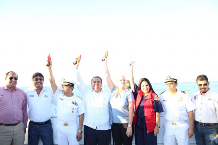 *El Secretario de Pesca, Andrés Córdova y la Alcaldesa de Los Cabos, Armida Castro, dieron salida a los 126 equipos que participan este año, por una bolsa de 4.5 MDD.