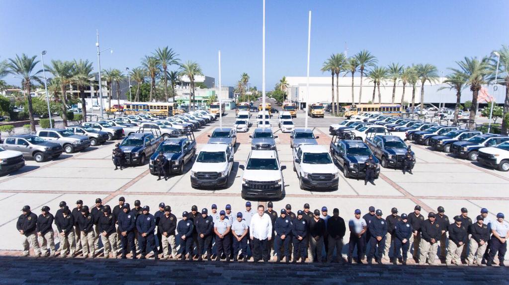 *El Mandatario Sudcaliforniano hizo entrega de apoyos históricos a las fuerzas de seguridad estatales y municipales.