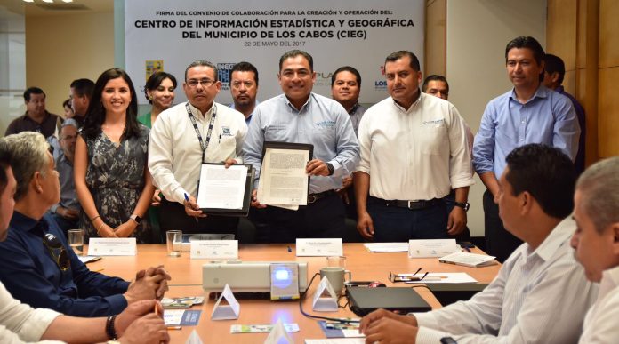 En un hecho sin precedente histórico, el Gobierno Municipal de Los Cabos y el INEGI DE Baja California Sur, signaron un Convenio de Colaboración para la creación y operación del Centro de Información Estadística y Geografía de Los Cabos (CIEG), el cual, permitirá suministrar a la ciudadanía, información de calidad, veraz, oportuna y pertinente; a través de los sistemas de información.