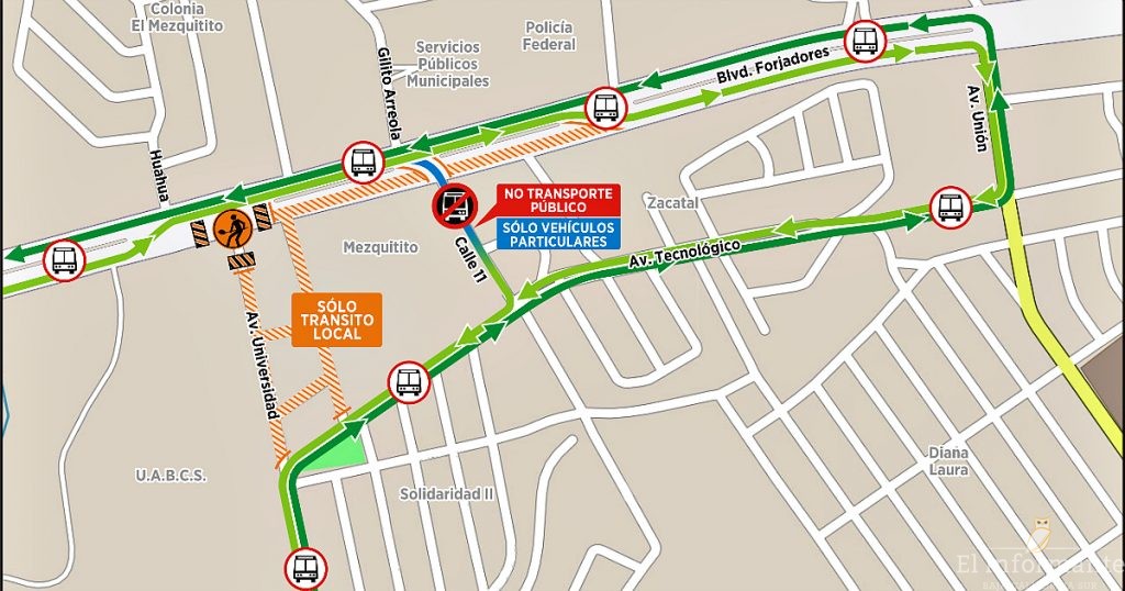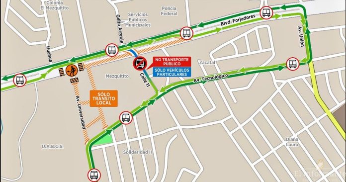 *Desde las oficinas de la Policía Federal, hasta la calle Huahua, se habilita el doble sentido del carril que va de sur a norte.