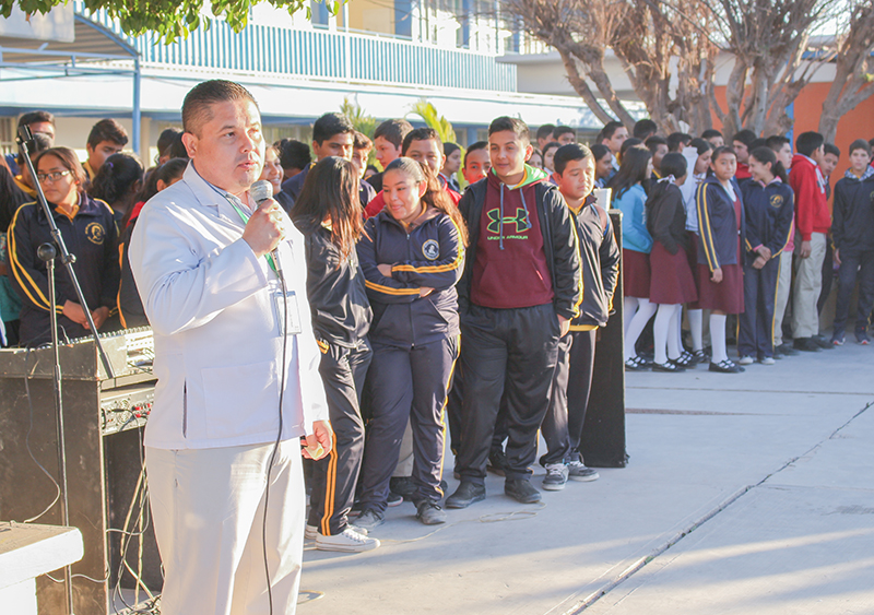 Ante el descenso de temperatura que registra la entidad desde hace unas semanas, la Secretaría de Salud en el estado mantiene la estrategia de promover en escuelas de nivel básico la aplicación de medidas preventivas contra influenza y enfermedades respiratorias, como ocurrió recientemente en la primaria Pablo L. Martínez y secundaria Luis Donaldo Colosio de Ciudad Constitución.