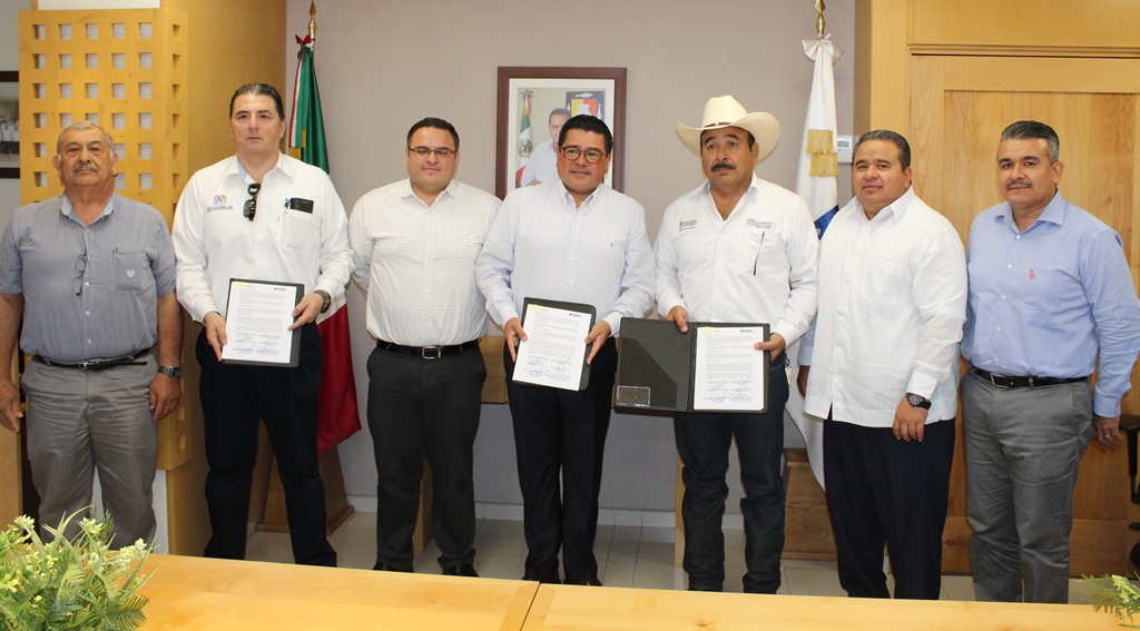 Los Secretarios de: Pesca, Acuacultura y Desarrollo Agropecuario, Andrés Córdova Urrutia; y de Finanzas y Administración, Isidro Jordán Moyrón; atestiguaron la formalización del convenio, a través del cual, el Fondo para el Desarrollo Social (FOSDEBCS), coadyuvará con el Fondo de Reconversión Agropecuaria del Valle de Santo Domingo, en la oferta de créditos a favor de productores agrícolas de los municipios de La Paz y Los Cabos.