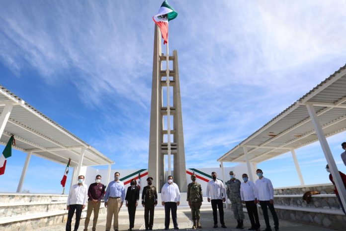 En ceremonia, realizada en el “Cerro de la Bandera”, en la Delegación Municipal de Buenavista; acompañado de la Presidenta del Sistema Estatal DIF, Gabriela Velázquez de Mendoza y en presencia de representantes de los Poderes: Legislativo y Judicial; Fuerzas Armadas y la Alcaldesa de Los Cabos, Armida Castro; señaló que, la bandera nos une y nos aproxima. No tiene ideología ni tiene partidos. Tiene colores que nos identifican a unos y a otros y que nos recuerdan que, pese a todo, por encima de todo; compartimos algo inmenso y honroso: somos mexicanos.