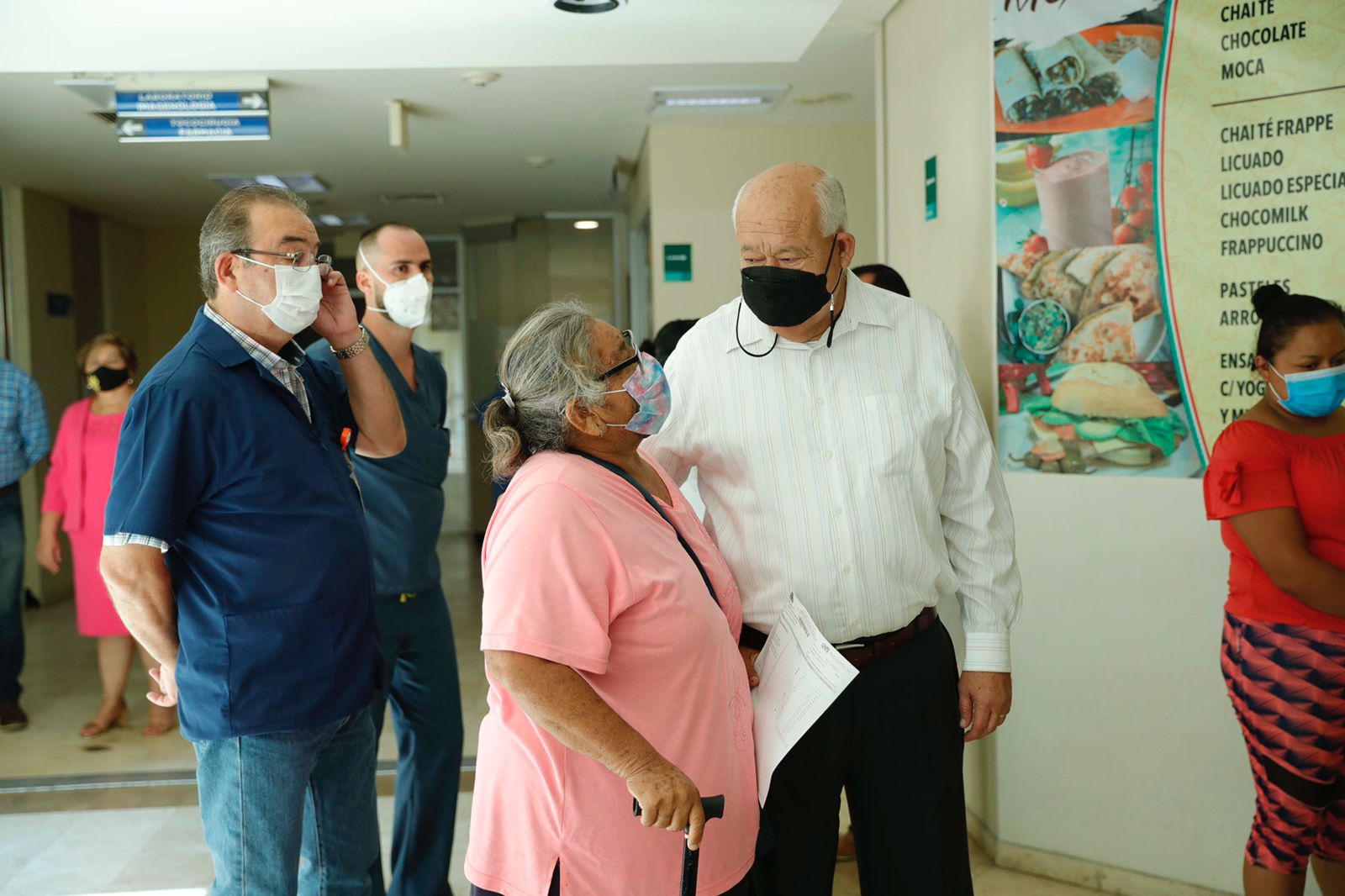 Acompañado de la Secretaria de Salud, Zazil Flores Aldape; del Director del Hospital, Bogdan Arriaga Benis y de la Directora de Servicios de Salud, Ana Luisa Guluarte Castro; realizó un recorrido por distintas áreas, en donde constató las condiciones que guarda el nosocomio, necesidades de abasto y condiciones laborales generales de los trabajadores.