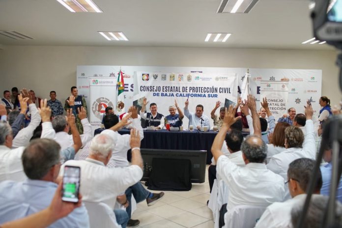 Ante la posible afectación por el paso de la tormenta tropical “Lorena”, en territorio sudcaliforniano, el Consejo Estatal de Protección Civil, encabezada por el gobernador Carlos Mendoza Davis, sesionó con las instituciones que lo conforman, declarándose listos para atender las posibles afectaciones que pudiera dejar el paso del meteoro por la Entidad.