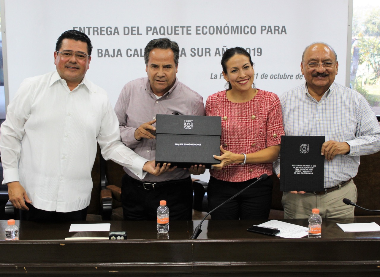 El Secretario de Finanzas y Administración del Gobierno del Estado, Isidro Jordán Moyrón, en representación del Gobernador del Estado, Carlos Mendoza Davis y de conformidad con lo establecido en la Constitución Política del Estado de Baja California Sur, hizo entrega del Paquete Económico para el Año Fiscal 2019; al Presidente de la Mesa Directiva de la XV Legislatura del Congreso del Estado, Ramiro Ruiz Flores y a los integrantes de la Comisión de Asuntos Fiscales y Administrativos, presidida por la Diputada, Milena Paola Quiroga Romero y como Secretario, el Diputado y Maestro, Esteban Ojeda Ramírez.