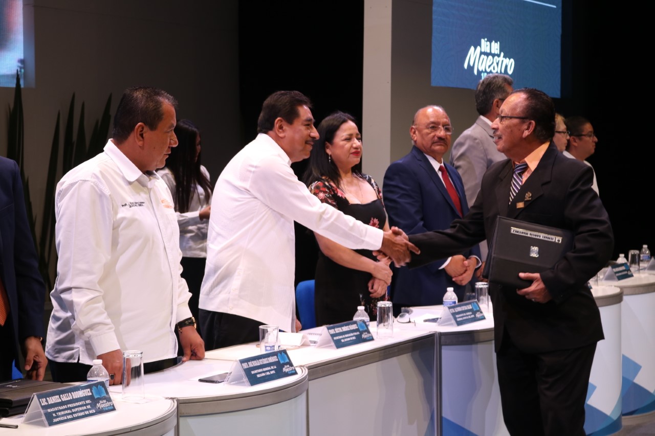 Mencionó, que en la ceremonia del “Día del Maestro”, el Gobierno del Estado, a través de la Secretaría de Educación Pública y en coordinación con la Sección Tercera del SNTE, entrega las preseas: “Profra. Rosaura Zapata Cano” y “Mtro. Rafael Ramírez”; a maestros que cumplieron 28 o 30 años de servicio, así como las medallas: “Profr. Domingo Carballo Félix” y “Mtro. Manuel Altamirano”; a los profesores que cumplieron 40 años de labor docente.
