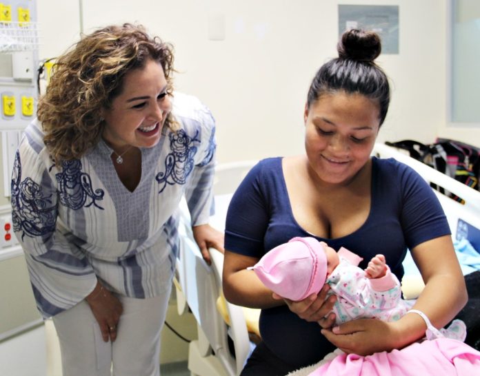 Acompañada del Secretario de Salud de BCS, Víctor George Flores, expresó su reconocimiento a las mujeres que se encontraban hospitalizadas por algún problema de salud o alumbramiento, resaltando el importante papel que juegan en la sociedad, ya que ellas representan el pilar más sólido y firme en el seno de un hogar y quienes sostienen en diversos casos a sus familias.