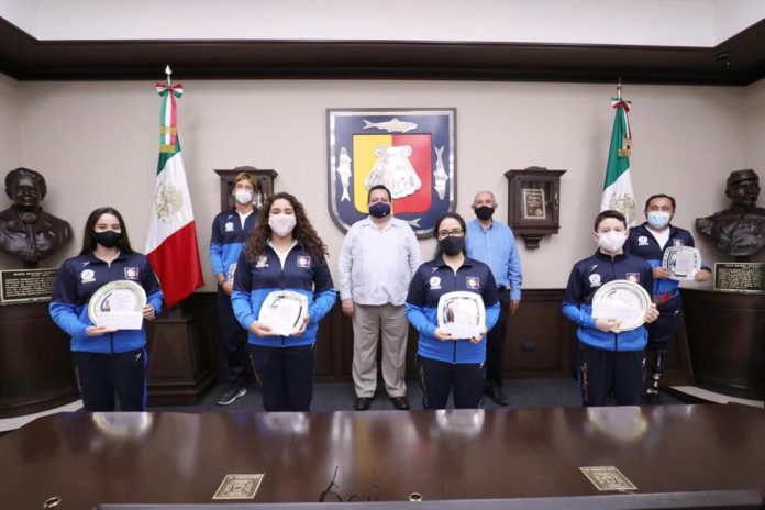 “Ustedes son un claro ejemplo de ello, jóvenes talentosos que día a día se esfuerzan por alcanzar sus metas, tanto en lo deportivo, como en lo académico; poniendo en alto, no solo el nombre de nuestro Estado, sino también el de México y eso es digno de reconocerse”; consderó.