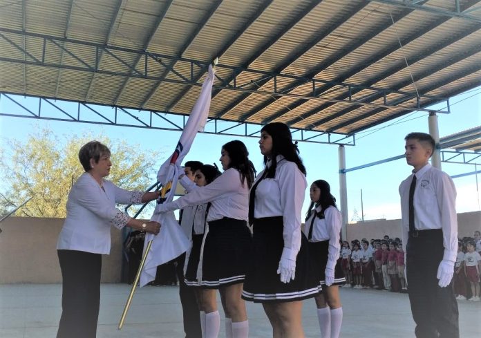 En acto celebrado en la plaza cívica del Instituto México Bilingüe, plantel Pino Payas, en esta ciudad Capital; la titular de la Unidad de Atención y Protección Integral de Niñas, Niños y Adolescentes (SIPINNA), Adela González Moreno; abanderó a este centro educativo, en el marco del programa estatal de abanderamiento de escuelas de nivel básico, el cual tiene como objetivo promover y fomentar, entre las presentes generaciones, la identidad sudcaliforniana.