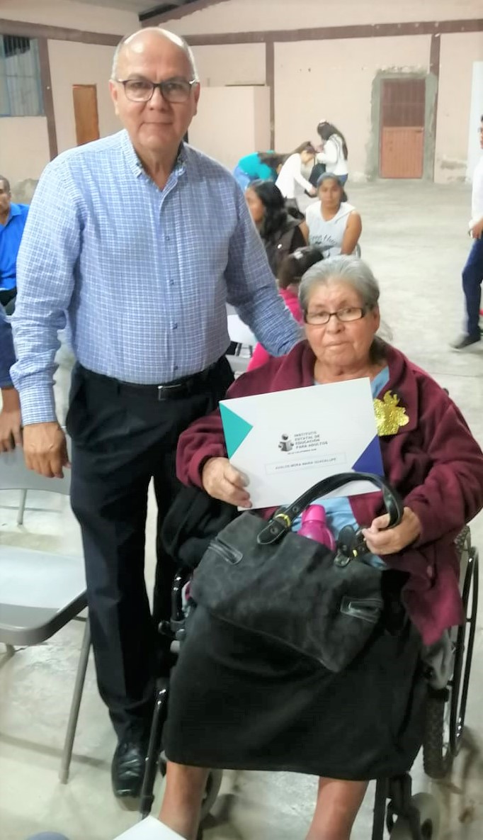 En compañía de José Jorge Suarez Cadena, representante del Gobierno del Estado, en ese Municipio, Edith Aguilar Villavicencio, representando a la Secretaría de Educación Pública (SEP), en el Municipio y directivos del IEEA; Osuna López, hizo entrega de un total de 27 certificados de educación básica, a personas que concluyeron satisfactoriamente el plan de estudios del IEEA.