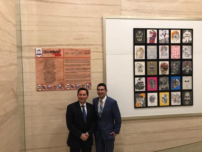 En el marco del Festival de Día de Muertos organizado por el Consulado General de México en Guangzhou, China, el pasado 26 de octubre, estudiantes y docentes del departamento de arte y diseño de la Universidad Mundial, en coordinación con el artista plástico Víctor Cerecer Cota, inauguraron la exposición artística “Tzompantli”, la cual, presenta más de 20 obras inéditas que honran la tradición del día de muertos en México.