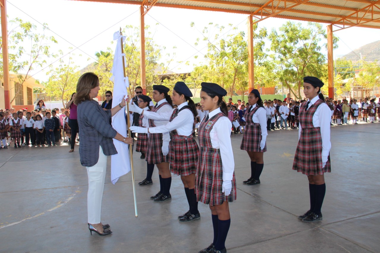Acompañada del representante del Gobierno del Estado en este municipio, Luis Alberto González Rivera y del personal docente y administrativo; señaló que esta actividad ofrece a niñas, niños y jóvenes; la oportunidad de conocer y transmitir el valor que representa la Bandera al Estado, ya que simboliza la identidad sudcaliforniana, como una entidad unida, libre y soberana, promoviendo en las nuevas generaciones el sentido de pertenencia.