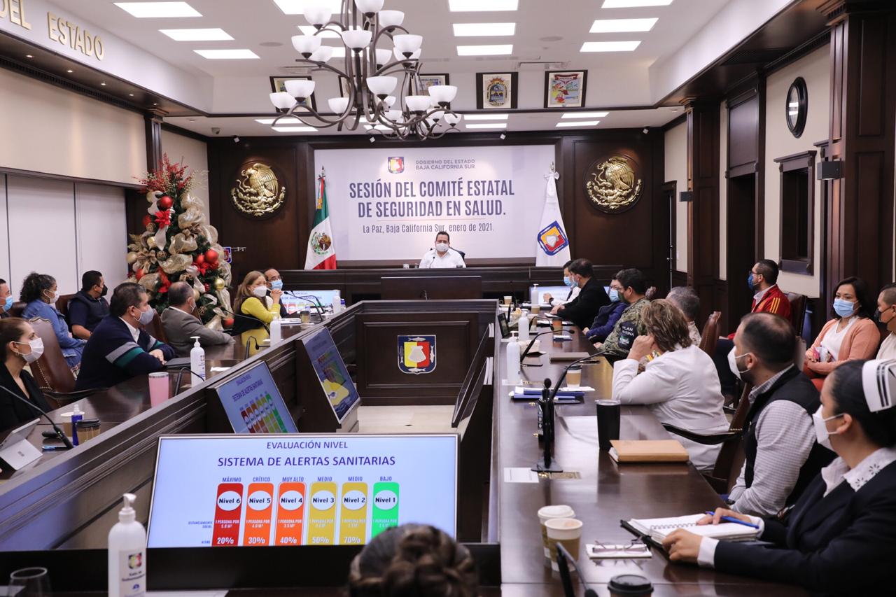 La Paz, Comondú y Loreto, continuarán en el nivel 4 de alertas sanitarias, mientras que Los Cabos y Mulegé, continúan en el nivel 3 del sistema estatal de alertas sanitarias; alertó el Comité Estatal de Seguridad en Salud, durante la primera sesión de trabajo correspondiente al 2021.