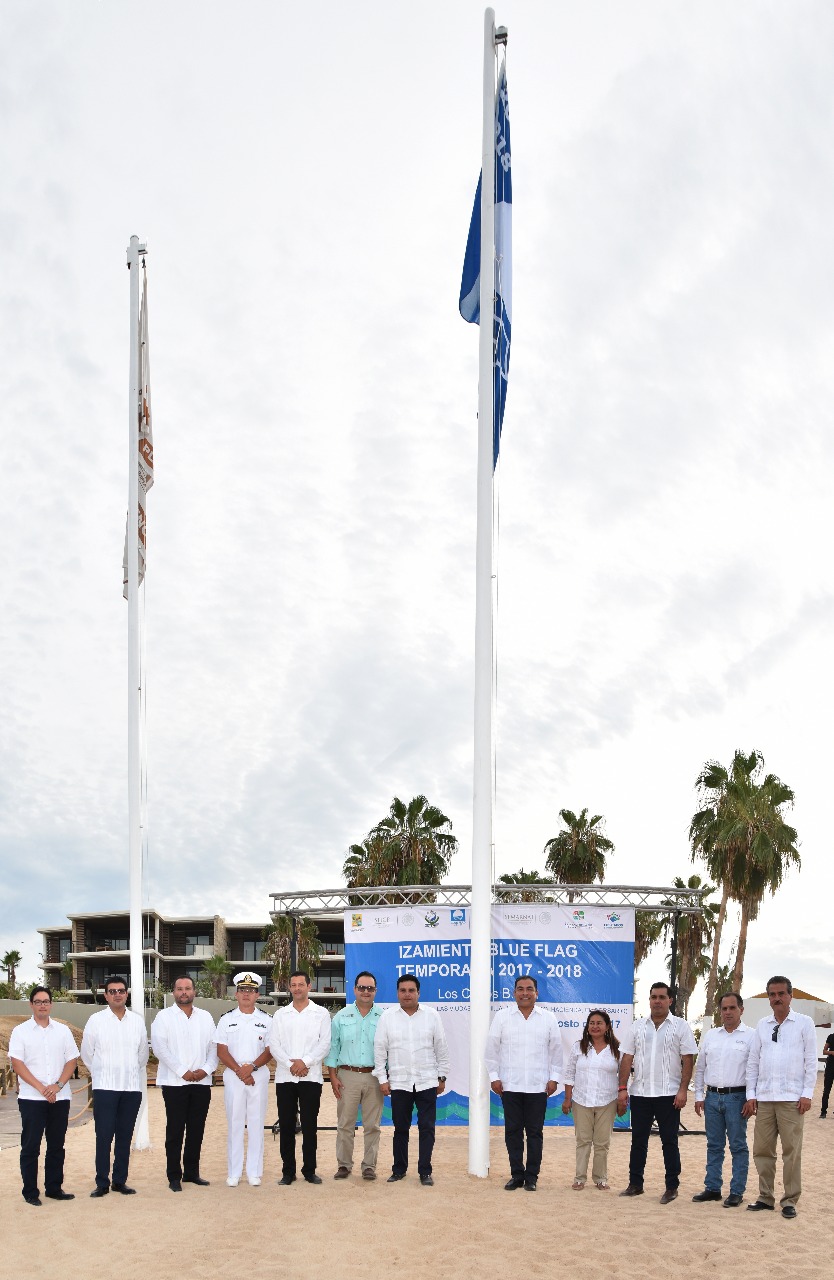 Durante el acto protocolario de Izamiento, se contó con la presencia del Coordinador Nacional de “Blue Flag” México, Joaquín Díaz Ríos; del Director de CONAGUA en Baja California Sur, Luis Alfonso Martínez Plata; del Sector Naval de Cabo San Lucas, Germán Díaz Olivier; del Delegado de FONATUR en el Estado, Raúl Chollet Rochin y en representación de la Secretaría de Turismo, Jesús Serafín Ochoa.