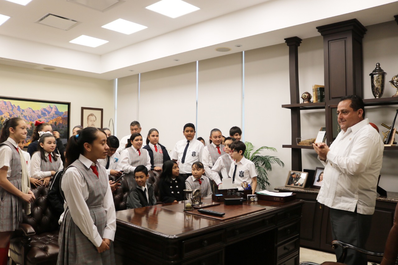 Posteriormente, los niños fueron recibos por el gobernador Carlos Mendoza Davis en su despacho, quien al darles la bienvenida los exhortó a conocer más sobre la historia de nuestra entidad y a aplicarse en sus estudios con la certeza que de esta forma, en un futuro se convertirán en ciudadanos de bien y si se lo proponen, podrán llegar a ocupar los cargos públicos que permitirán que la entidad, continúe por la ruta del progreso y bienestar para todos los sudcalifornianos.