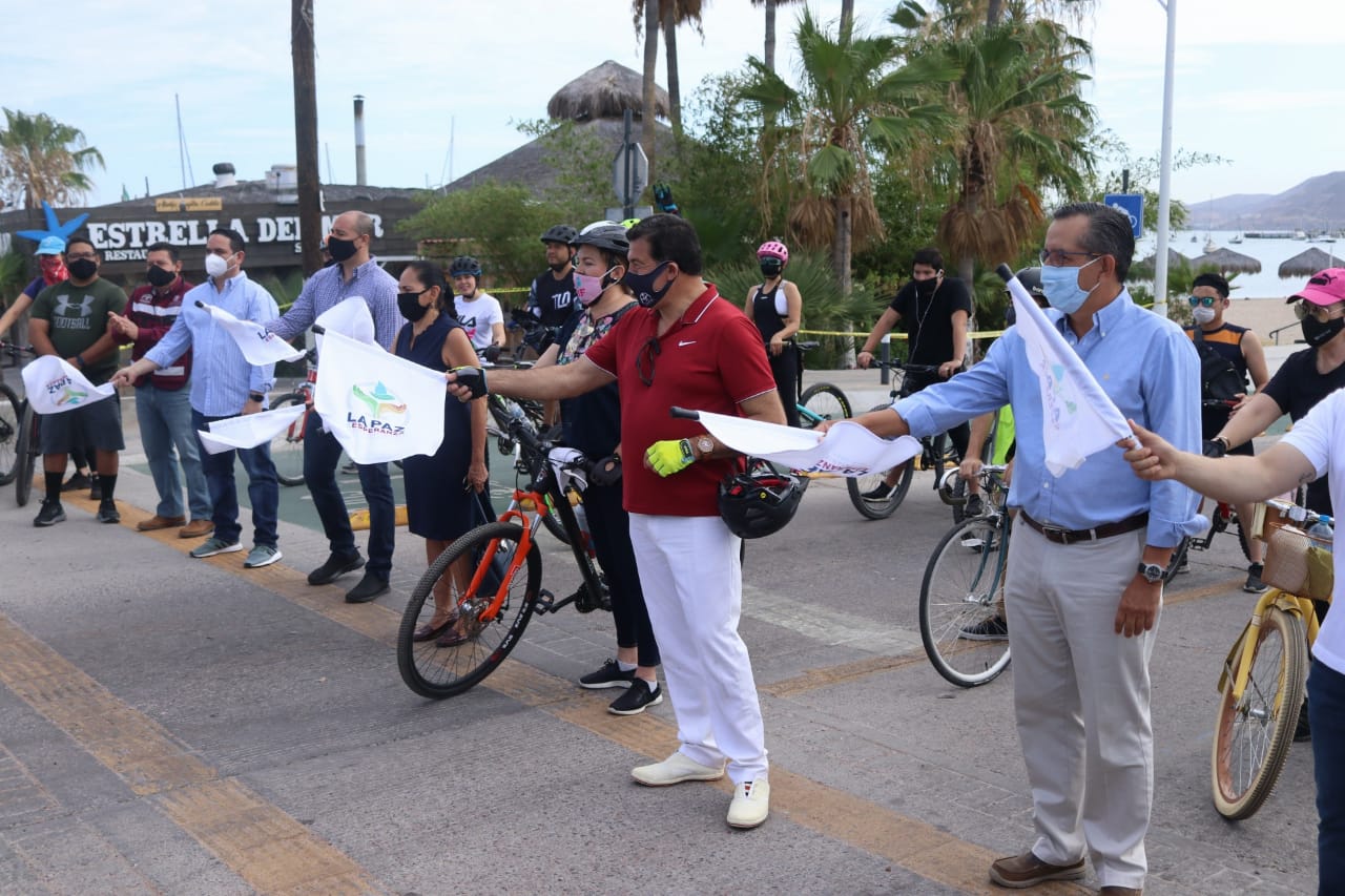 En el marco del plan de reactivación económica, en el municipio de La Paz, este domingo, el Presidente Municipal Rubén Muñoz y su esposa, Rosita Cordero de Muñoz; representantes de cámaras empresariales, ciclistas y servidores públicos municipales; abrieron la circulación del Malecón costero de ciudad Capital.