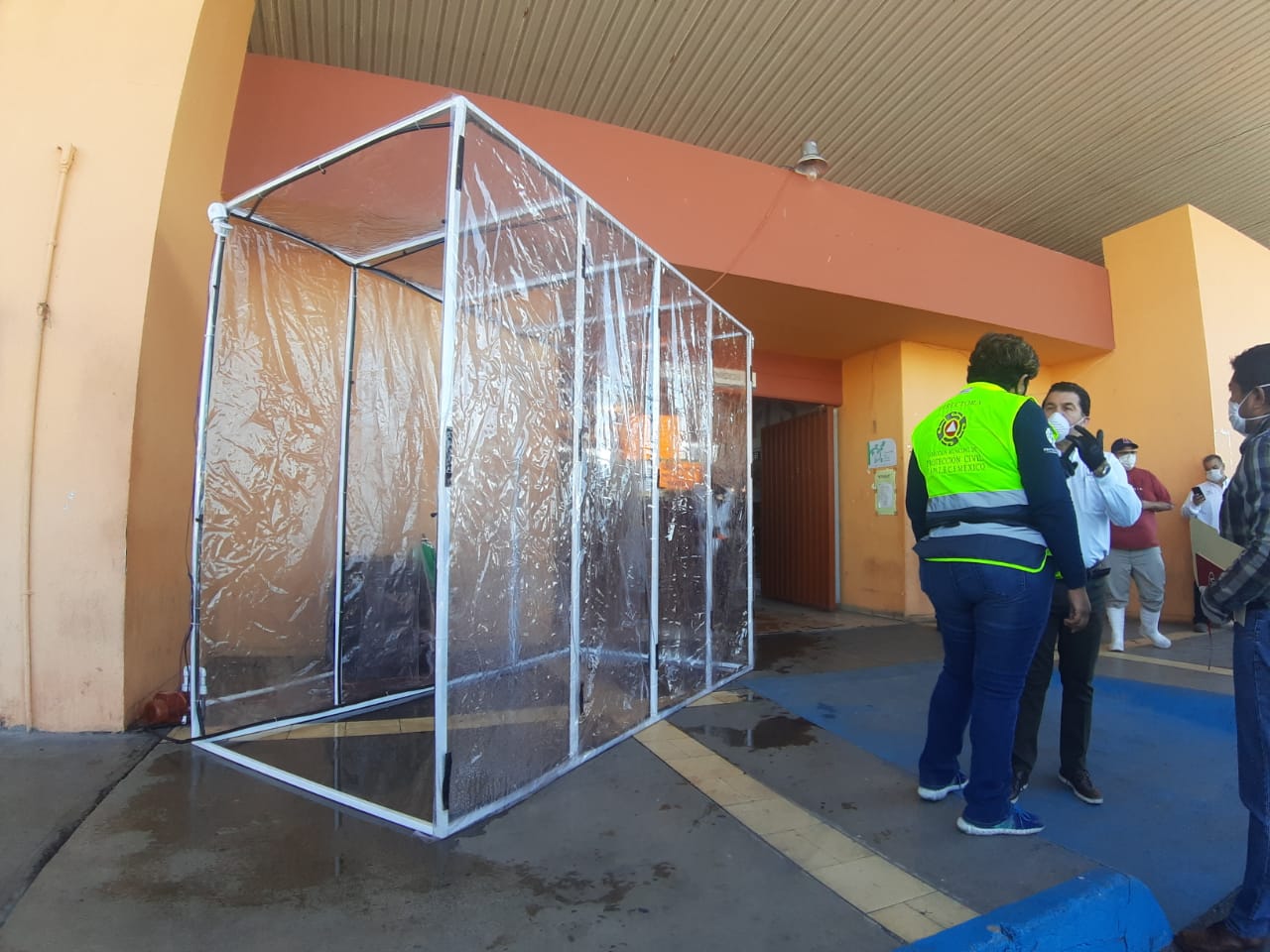 Por su parte, Felipe de Jesús González Díaz, Director de Fomento Económico; aseguró que, en el túnel, se está utilizando hipoclorito de sodio, (recomendado por la Organización Mundial de la Salud); totalmente inocuo y que al pasar, sanitiza todo el cuerpo y calzado de la persona; de tal manera, que toda persona que entra al mercado, va desinfectada de manera integral. El túnel fue fabricado con materiales locales y mano de obra de personas que, debido a la presente contingencia, se habían quedado sin trabajo.