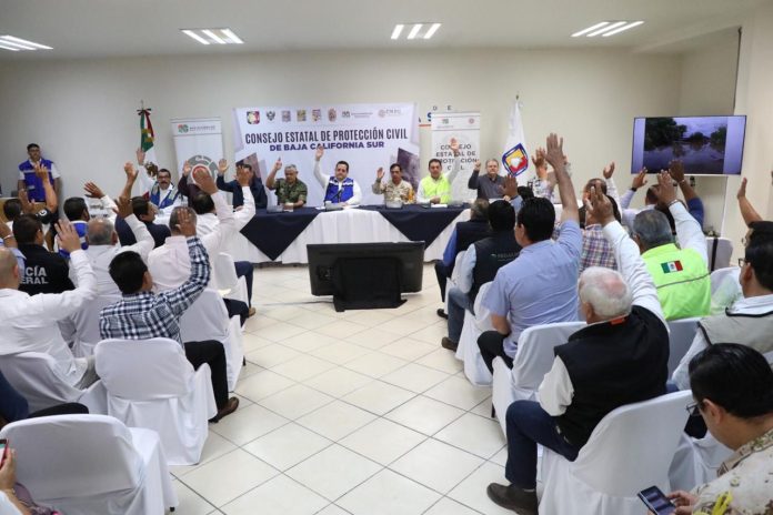 Mendoza Davis solicitó la declaratoria de emergencia para los municipios de Los Cabos y La Paz, misma que se comentó con David León Romero, titular de la Coordinación Nacional de Protección Civil (CNPC).