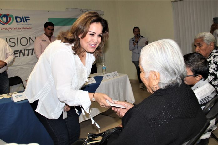 La Presidenta del Sistema Estatal DIF (SEDIF), Gabriela Velázquez de Mendoza, entregó apoyos a adultos mayores y personas con discapacidad, integradas al padrón de beneficiarios del Programa de Pensiones Humanitarias, en los municipios del Loreto y Comondú.