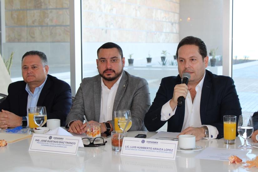Para crear las condiciones idóneas que propicien el desarrollo económico y social de Baja California Sur, es fundamental sumar esfuerzos con los principales actores empresariales”; estimó el Secretario de Turismo, Economía y Sustentabilidad (SETUES), Luis Humberto Araiza López, durante un encuentro con socios de la Confederación Patronal de la República Mexicana (COPARMEX).