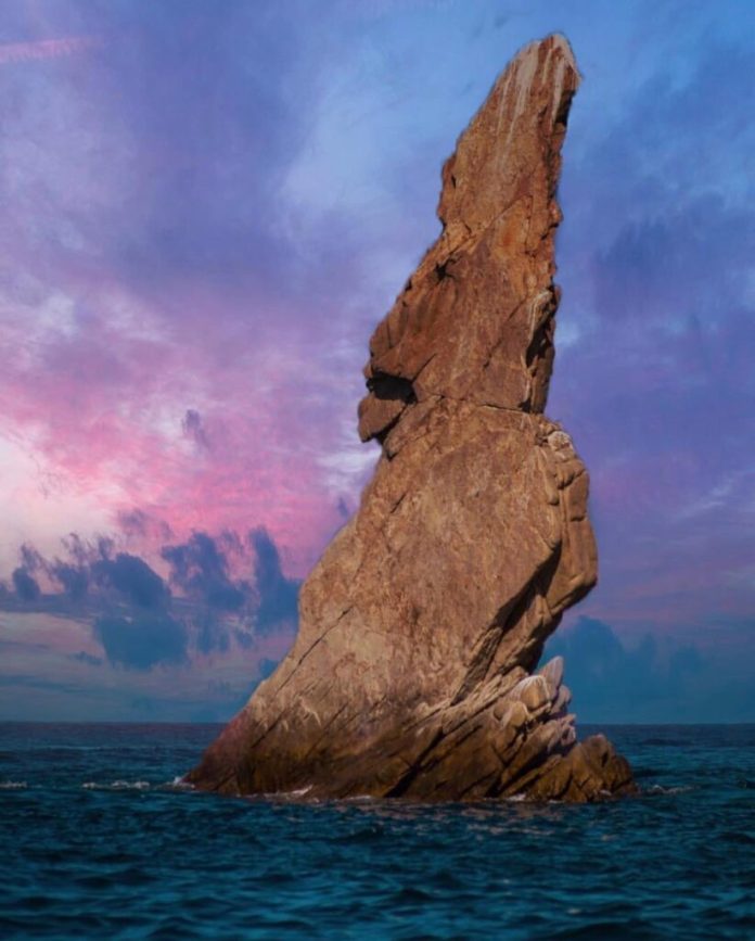 Muy cerca del famoso Arco de San Lucas, prácticamente en la frontera entre ambos mares, se encuentra una roca que sobresale del agua, la cual con el paso siglos (o milenios) ha tomado una bella y caprichosa forma que se ha vuelto todo un atractivo turístico para los lugareños y turistas. Esta bella formación rocosa es percibida por algunos visitante como una península de Baja California invertida o “de cabeza”, es decir, con su parte final apuntando hacia el cielo; otros le encuentran forma de un alfil y muchos otros la conocen como el “Dedo de Neptuno“, haciendo alusión al dios de la mitología romana que gobernaba los océanos.