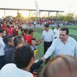El Alcalde, destacó que su gobierno apoya y promociona al deporte y ha sido, es y será su prioridad: “prueba de ello, son la serie de obras de infraestructura deportiva que se ha construido en Comondú. Entre otras, los campos empastados, tanto en la Cabecera Municipal, como en las diferentes comunidades.